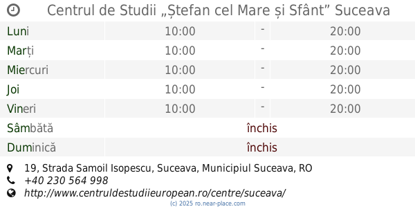 | Sâmbătă | închis | |||||