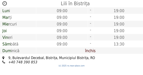 | Duminică | închis | |||||
