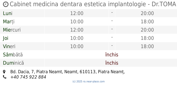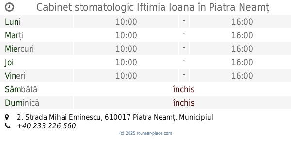 | Sâmbătă | închis | |||||