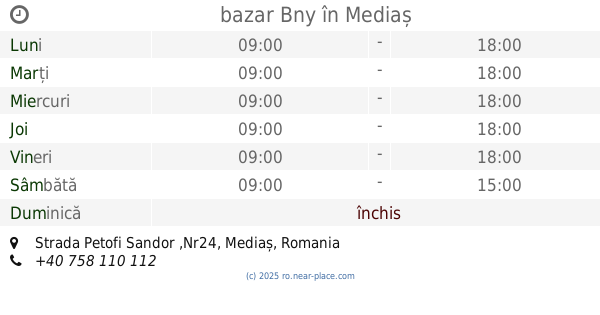 | Duminică | închis | |||||