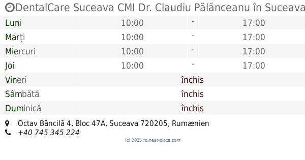 ::Mi-a fost pusa o plomba pentru 350 iar acum la aproximativ o luna ma doare maseaua de mor. Nu mai spun ca doctorita de acolo este un pachet de nervi ce face treaba pe fuga si cu telefonul la ureche. Stati departe de acest cabinet. Dezastru nu altceva.